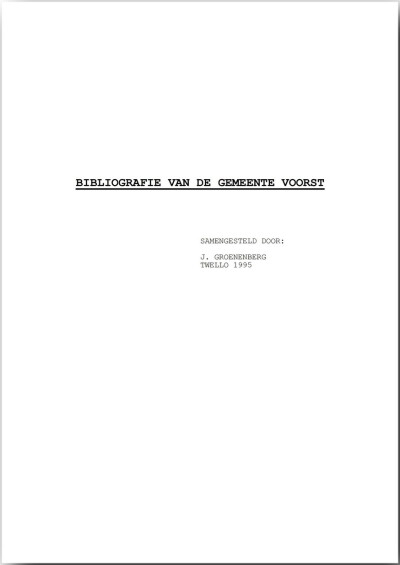 Deze bibliografie is eigenlijk de neerslag van enigszins uit de hand gelopen hobby-aktiviteiten. Door het lezen van allerlei literatuur over de regionale geschiedenis van met name de gemeente Voorst, verzamelde ik in de afgelopen jaren veel titels van boeken en artikelen. Op een gegeven moment ontstond het idee om een bibliografie van de gemeente Voorst samen te stellen. Bij het gericht zoeken naar literatuur heb ik o.a. gebruik gemaakt van eerder verschenen bibliografieën en tijdschriften. Deze worden vermeld in de bronnenlijst.
