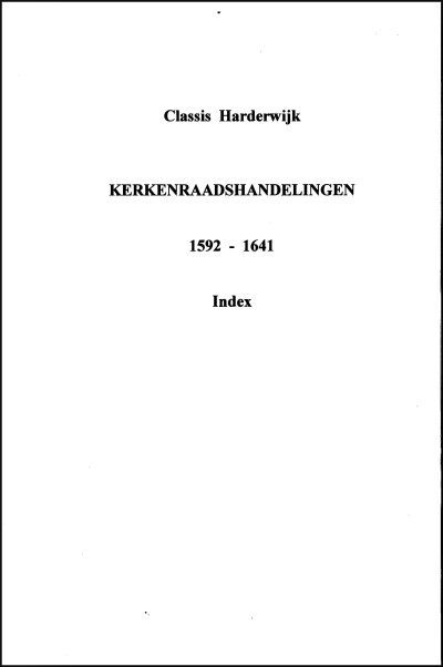 Classis Harderwijk Kerkenraadshandelingen 1592-1641 Index