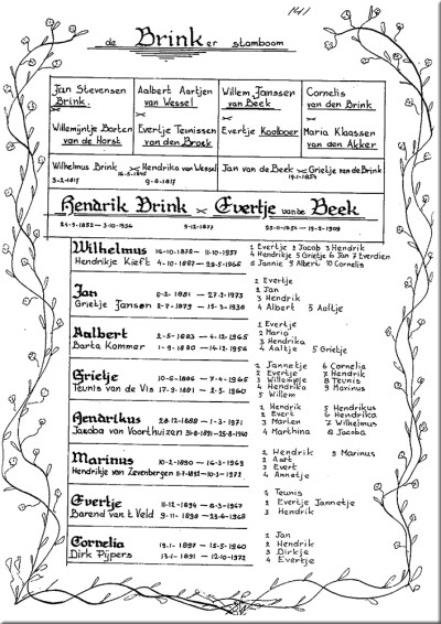 Een summiere kwartierstaat van de fam. Brink, van de Vis, van der Kwast.