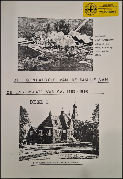 Het schrijversechtpaar G. Meijer & J. Meijer-de Vries heeft al meer genealogieen gepubliceerd en met trots mogen zij nu naar de Lagemaat-genealogieen kijken. Het is een heel werk geworden. De familienamen zijn afgeleid van de boerderij naam De Lagemaat nabij Woudenberg. Na enige inleidingen, o.a. over de plaatsen Woudenberg en Doorn, begint de genealogie Lagemaat met Gijsbert Hermensen, geb.ca. 1585 onder Scherpenzeel. Het boek is uitbundig geillustreerd met zwartwit reproducties van foto's van personen en van boerderijen e.d. De schrijvers hebben veel werk verzet en hun resultaat heeft zeker waardering van de familieleden gekregen. Die van ons willen wij er graag aan toevoegen. Onze dank voor het geschenkexemplaar. ACZ.
