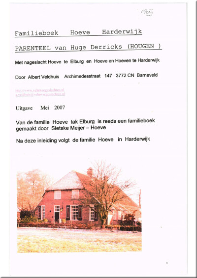 - a. Huge Derricks (Hougen) Hij wordt geboren rond 1520 en is schepen te Nijbroek. Hij heeft twee zoons, Willem en Jan. In 1670 wordt een van hun nakomelingen, Jan Jansen Hoegen / Huigen / Hoeve te Terwolde geboren. Hij trouwt met Willemtje Gerrits en hun zoon Jan trouwt met Margrieta Hendricks Top te Elburg. Het paar vestigt zich te Elburg en uit hen komt de familie Hoeve, tak Elburg. Een tweede zoon, Gerrit, trouwt met Gerritje Willems uit Nunspeet en voor de tweede maal met Metje Jacobs Beekman te Nunspeet. Van deze zoon Gerrit stammen de families Hoeve en Hoeven te Harderwijk af.