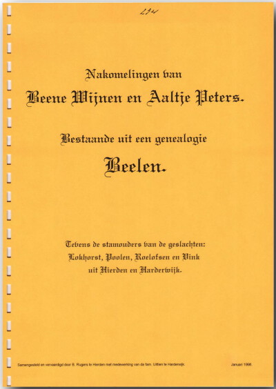 Bestaat uit genealogie Beelen met gegevens van de geslachten Lokhorst, Poolen, Roelofsen en Vink uit Hierden en Harderwijk.