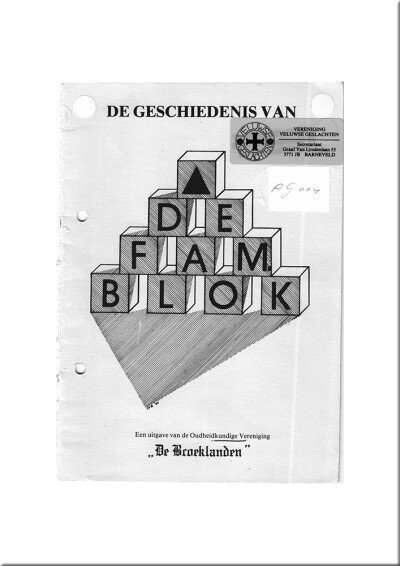 De geschiedenis van de familie Blok te Oldebroek is de eerste publikatie in een reeks van de genealogische werkgroep van de Oudheidkundige Vereniging De Broeklanden . Deze publikatie bevat de geschiedenis van de familie Blok, oorspronkelijk afkomstig uit Hasselt (1689) en vanaf 1817 wonende te Oldebroek. Zelfs de jongste spruit van de familie, Paula, geb. Hattemerbroek 25-5-1984 is met foto en geboortekaartje in de publikatie opgenomen. Wij zien met belangstelling uit naar de volgende publikatie in deze reeks, waarin naar we hopen wel een namenindex zal worden opgenomen. T.v.d.B.