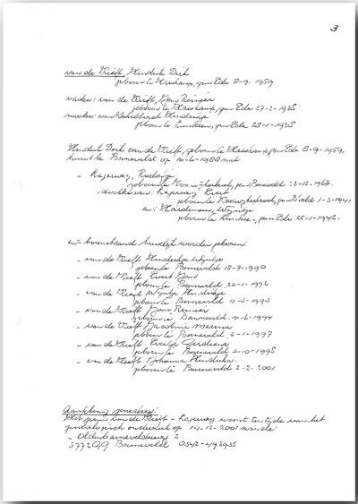 Deze genealogie beslaat in totaal 18 multomappen met elk tussen de 150-250 beschreven A4-tjes. Het geheel is zeer goed leesbaar en zeer nauwgezet uitgewerkt.