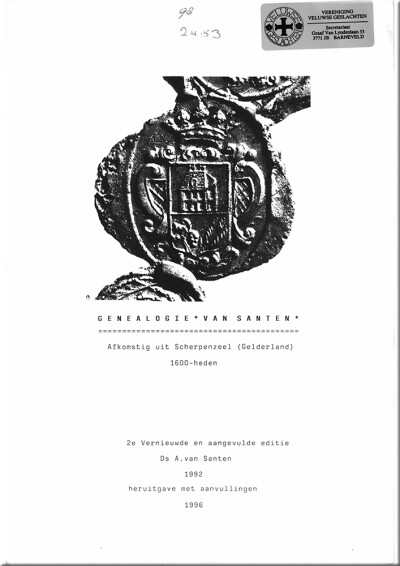 A. van Santen, 1980. Familie van Santen afkomstig uit Scherpenzeel (Geld.), Hilversum. Eigen uitgave.