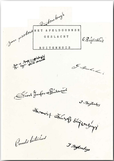Het Apeldoornse geslacht Buitenhuis. Onder deze titel verscheen het volgende boekwerk door E. de Jonge. Het boek bevat 145 pagina's, formaat A4 en is rijkelijk voorzien van illustraties uit diverse bronnen. De inhoudsopgave is te vinden op de laatste blz., wat ik persoonlijk als een nadeel beschouw. De pagina's 1 t/m 14 behandelen de oudste Buitenhuizen, alsmede de geschiedenis van de boerderij, waaraan de familie haar naam ontleent. Op blz. 15 begint de hoofdtak met een Evert to Buytenhuiss, geb. ca. 1450, landbouwer in de Wormingermark te Apeldoorn, waarin de boerderij lag. Verder is het boek verdeeld in de diverse takken, vaak geheten naar de buurtschappen of plaatsen waarin de personen voorkwamen. Bijvoorbeeld een Vaassense tak, een Deventer tak, een Nachtegaal tak en een Nunspeetse tak. Verder nog een familie die waarschijnlijk de naam heeft aangenomen, beginnend met een Hermen Everts, geb.ca. 1630/1640. In de 5e graad volgt Peel, ged. Apeldoorn 5- 7-1778, deze taak heet Peel Roelofs tak. Op blz. 139 t/m 141 staat een namenlijst van personen uit de 20e eeuw die naar de diverse takken verwijzen. Een schema op blz. 142 met een overzicht van de diverse takken, op blz. 143 herinneringen aan Lammert Buitenhuis.