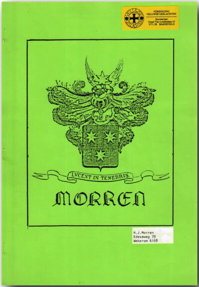 De auteur laat het Veluwse geslacht Morren beginnen bij Morre Rutgerssen,terwijl hij eerder aangeeft dat een zoon van Jan Morren en zijn nicht Gertrude Morren, Rutger wordt genoemd. Deze stamt af van Iers/Engelse geadelde Morren's. Moeten wij hieruit afleiden dat de auteur geen bewijs heeft gevonden voor een vader/zoon relatie tussen Rutger Morren-Morre Rutgerssen ? Bij de Nederlandse voornaam Morre en het patroniem Morren (vergelijk Toon-Toonen) moeten wij denken aan de voornaam Maurits. Morre Rutgerssen is lid van de N.H. kerk te Oosterbeek. Hij heeft drie kinderen, twee dochters en een zoon Evert, die ca. 1625 geboren zal zijn. Op de omslag siert het wapen van Ier/Engelsman Egide Morren, in zilver drie zespunten sterren van goud, geplaatst 2-1. Helm bedekt met een wrong in de kleuren van het schild. Helmteken: een ster van het schild tussen een vlucht van zilver. De wapenspreuk Lucent in Tenebris wordt niet vertaald. De kleuren van het wapen zijn onheraldisch, omdat metaal op metaal (goud op zilver) niet is toegestaan. Ook bij Nederlandse afstammelingen vinden wij dit wapen terug. Men nam het niet zo nauw met het aantal punten van de sterren. Sommigen wapens hebben zespuntige sterren, andere vijfpuntige. Het zou bijzonder interessant zijn om de relatie Rutger Morren-Morre Rutgerssen vast te stellen. Zolang deze niet duidelijk is moet, zoals de auteur ook aangeeft, het geslacht bij Morre Rutgerssen beginnen. Men zou door kleurwijziging van of het schild of de sterren een eigen, heraldisch verantwoord familiewapen kunnen krijgen.