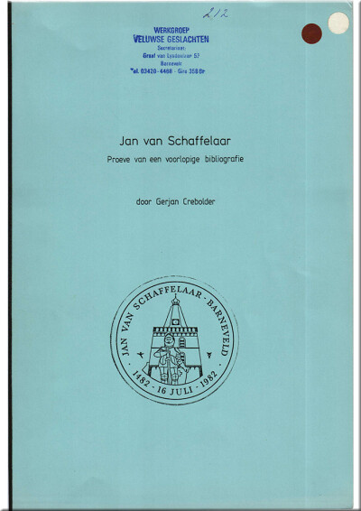 Jan van Schaffelaar, Proeve van een voorlopige bibliografie