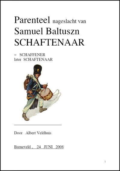 Deze parenteel bevat zoveel mogelijk nakomelingen van Baltus Schaffenaar en in het bijzonder van zijn zoon Samuel Baltesz Schaftenaar die in 1718 te Harderwijk trouwt met Harmentje Berentsdr. Gerrits. Als oudste schrijfwijzen zijn wij tegengekomen: Schaffner, Schaffener, Schaffeler, Schaffenaar, Schafftenaar, enz.