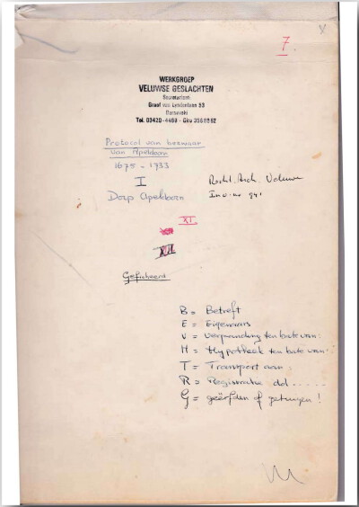 Handgeschreven transcriptie van Protocol van bezwaar Apeldoorn 1675-1733 deel 1. In Scans is de akte zelf ook te zien.