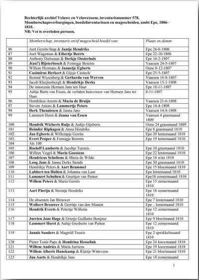 Dit is een transcriptie van Rechterlijk archief Veluwe en Veluwezoom, inventarisnummer 578. Hierin zijn opgenomen: momberschapsverburgingen, boedelinventarissen en magescheiden, ambt Epe, 1806-1810.