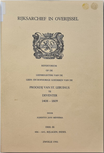 Leen- en hofhorige goederen van de Proostdij van St. Lebuinus te Deventer 1408-1409 (met goederen op de Veluwe met name in Apeldoorn, Heerde en Voorst).