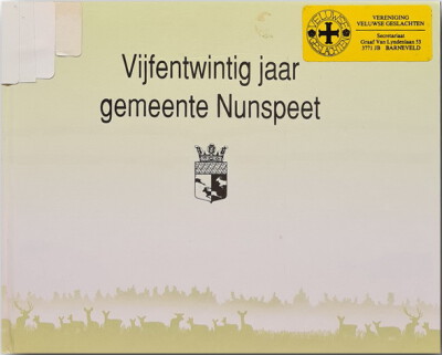 Voor onze bibliotheek ontvingen wij een presentexemplaar van: Vijfentwintig jaar gemeente Nunspeet in beeld, 1997, 78 blz., samenstelling en redactie D. Baas, P. van Beek, G. Berends, W. Bonestroo, P.H. Korving en drs. A. Sulman. Voor de Veluwe is het uniek dat een gemeente anno 1997 pas 25 jaar bestaat. De laatste tijd komt het veel meer voor dat gemeentes worden samengevoegd. Het boek is voorzien van veel foto's en afbeeldingen.