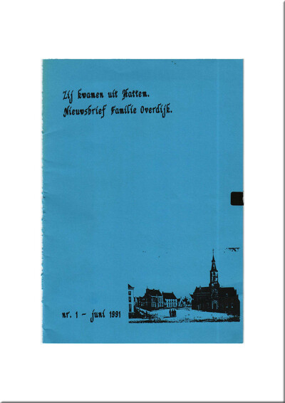 De schrijver van de genealogie Overdijk is co-auteur van de informaticamethoden Ready-Run en Start-Up en zijn ervaring met de computer is terug te vinden in dit boekwerk. In een Woord vooraf geeft de schrijver aan, dat het niet duidelijk is waarom in ca. 1812 de familie de naam Overdijk gaat voeren. Er kon geen verband gelegd worden met andere geslachten Overdijk. Misschien dat door verder onderzoek, ook naar de herkomst van de stammoeder, een oplossing kan geven. De oudste Overdijk is Hermen Peters, tr. Hattem 6- 31726 Jacomijne Jacobs. Aangezien de schrijver hoopt de genealogie verder op te voeren, begint hij met deze Hermen Peters als generatie III. Het boekje is aardig geillustreerd met foto's van Hattemse straten en van enige personen genoemd in deze genealogie. Een namenindex maakt het werk toegankelijk. Een puntje van kritiek is dat niet altijd duidelijk is of de data, vermeld bij 'Kinderen' doop- of geboortedata zijn. Dit kan terzijnertijd verbeterd worden. Dank aan de schrijver voor het exemplaar voor onze bibliotheek. ACZ.