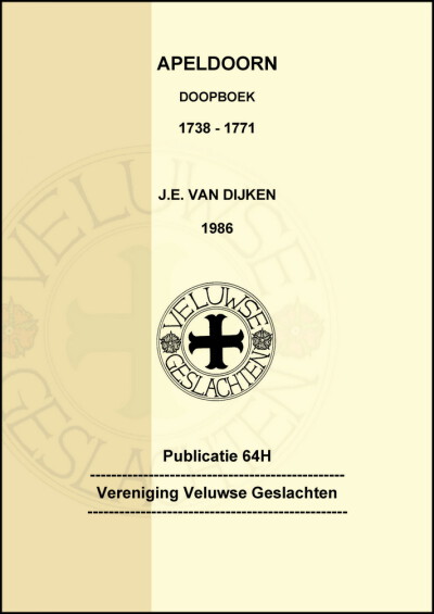 Publicatie 64 bevat een transcriptie van het Doopboek Nederduits Gereformeerde Gemeente Apeldoorn 1738 – 1771, RBS 43. De publicatie is in 2021 in een nieuw, standaard format gezet, is geheel gecontroleerd en waar nodig herzien/aangevuld.