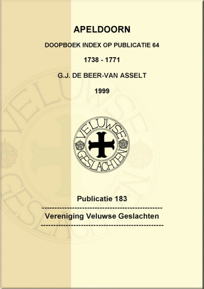 Dit is een index op publicatie 064 van VVG van het doopboek van Apeldoorn van 1738 - 1771; een index op voornaam vader, waarbij de uit het huwelijk van de vader gedoopte kinderen bij elkaar gebracht zijn. Alle in het boek vermelde huwelijken zijn gehaald uit publicatie 054 van VVG (Huwelijken elders gesloten van uit Apeldoorn afkomstige personen). Immers, de in Apeldoorn gesloten huwelijken zijn, door het verloren gaan van de trouwboeken, niet meer te vinden. Op de eerste pagina staan de doopdata vermeld van de kinderen van ongehuwde moeders, waarbij de namen van de moeders op voornaam zijn gesorteerd.