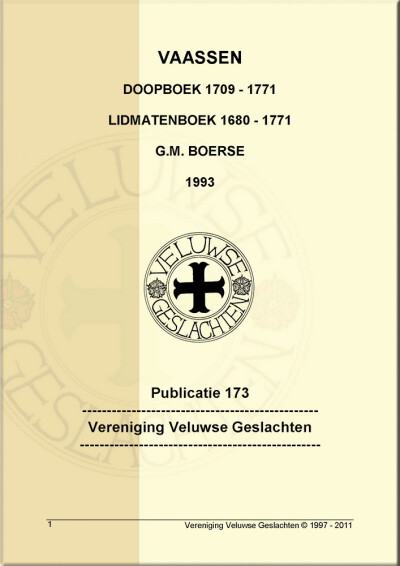 Deze publicatie is een transcriptie van het Doopboek Vaassen (Nederlands Hervormde Gemeente) over de periode 1709 – 1771. Verklaring van de gebruikte afkortingen in dit doopboek: