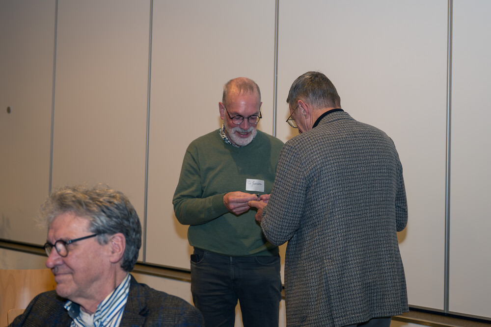 Rond 16.00 uur werd de dag afgerond met de uitreiking van de nieuw ontworpen VVG-speld aan de aanwezige ereleden (als dank voor hun verdiensten voor de vereniging), een bedankje met bloemen aan de jubileumcommissie en een gezamenlijke toost op 50-jaar VVG.